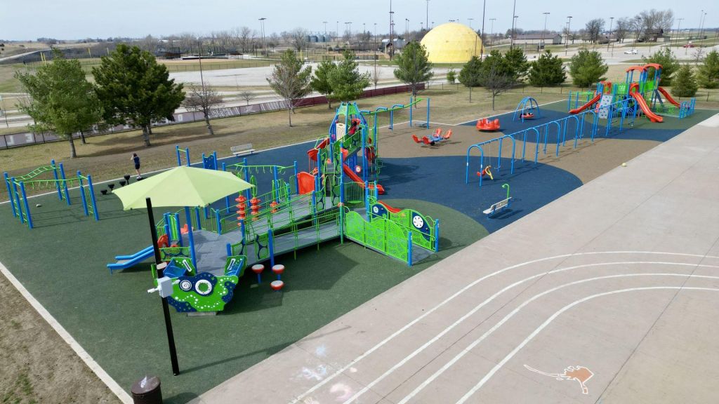 Winterset celebrated the grand opening of their first ever inclusive playground April 13, 2024. This almost 10,000-square-foot playground was a project initiated by the Winterset Rotary Club and the Parks and Recreation Department. Together their goal was to make a playground for everyone to enjoy, and that bridges Madison County’s history to its future.
