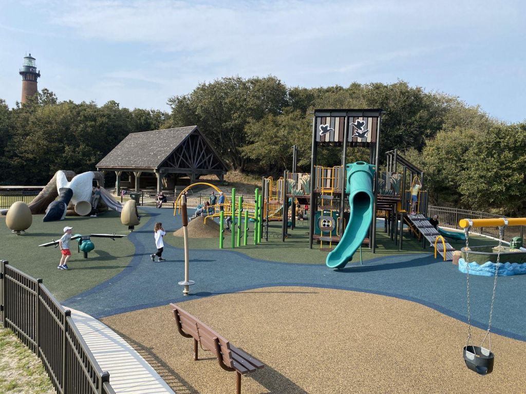 Check out this amazing GameTime playground in North Carolina! This new playground in Historic Corolla Park is adjacent to the Maritime Museum, Currituck Beach Lighthouse and the historic Whalehead mansion. All of this makes Historic Corolla Park a great destination for a day trip!