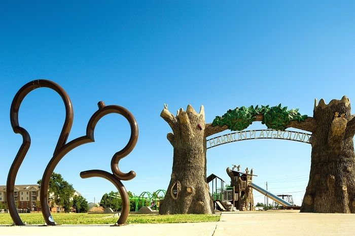 Let’s look at how community collaboration can be successfully implemented in crafting a unique playground entryway, such as this masterpiece from Georgetown, TX.