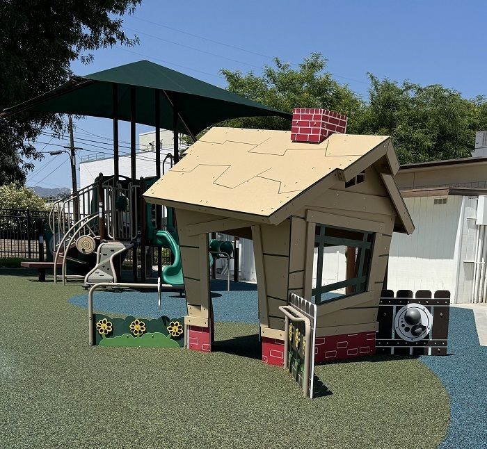 With this in mind, preschool playgrounds should have slides and climbing structures at a safe height, imaginative play spaces (e.g., playhouses, themed areas), and interactive panels like alphabet blocks, music stations, or shape sorters. For this age group, we recommend the ECHO Preschool play system that features a climbing tunnel, table and seats for two, and slides and climbers, as well as GameTime’s new Play Pals.