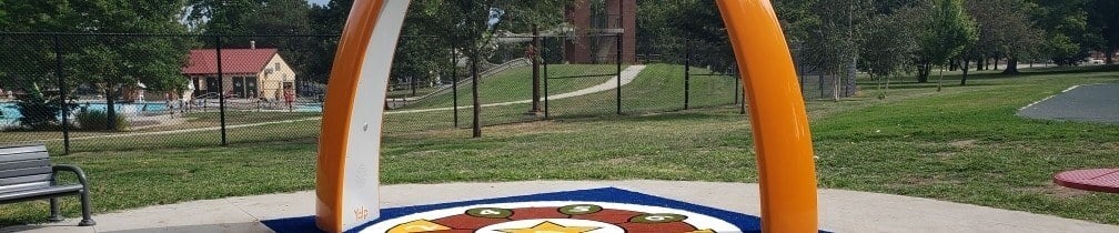 Miller Park is located across the street from a school and hosts hundreds of kids each day for summer camps and special programming throughout the year. Omaha Kiwanis Club was looking to partner on a signature project that commemorated their 100th anniversary. Together with Play 4 ALL, the first of its kind in Nebraska, the Yalp Sona Arch and Sutu Wall were installed. These interactive play pieces blend the digital world and the physical components of play together to engage youth of all ages and abilities. The Sona Arch is truly a multigenerational inclusive favorite.