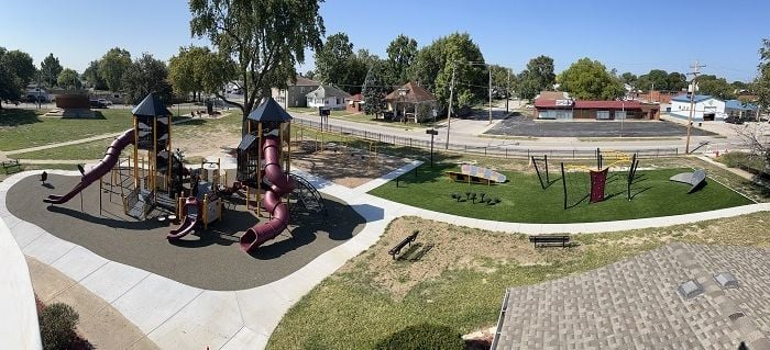 The Wood River Parks and Recreation Department, with funding from the Rebuild Illinois capital plan, installed a new one-of-a-kind all-inclusive playground with poured-in-place rubber surfacing at Central Park in Wood River, IL.
