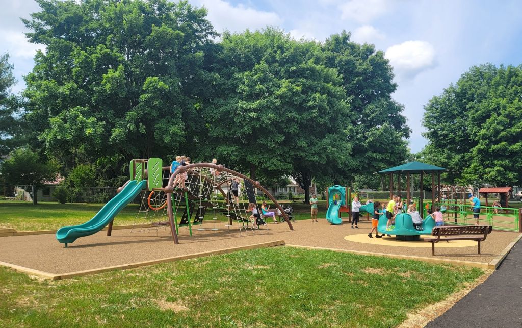 Most recently, they have added a new GameTime playground to the park. It includes two play structures, a freestanding VistaTwist Tower net climber, sensory wave climber, Sensory Cove climber cozy spot and swings. The 2-5 age play structure has various climbers and a slide for age-appropriate play.
