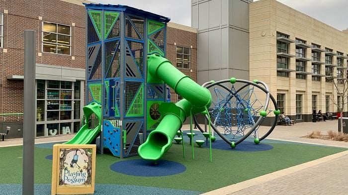 When ground space is limited, look up! Vertical play structures allow you to pack climbing, sliding, and imaginative play into a smaller footprint. Multi-level designs create opportunities for exploration and challenge without requiring sprawling layouts. Consider compact towers with climbing walls, spiral slides, and interactive panels. Plus, in an urban setting, kids will love climbing to the top of the structure and looking out at their view!